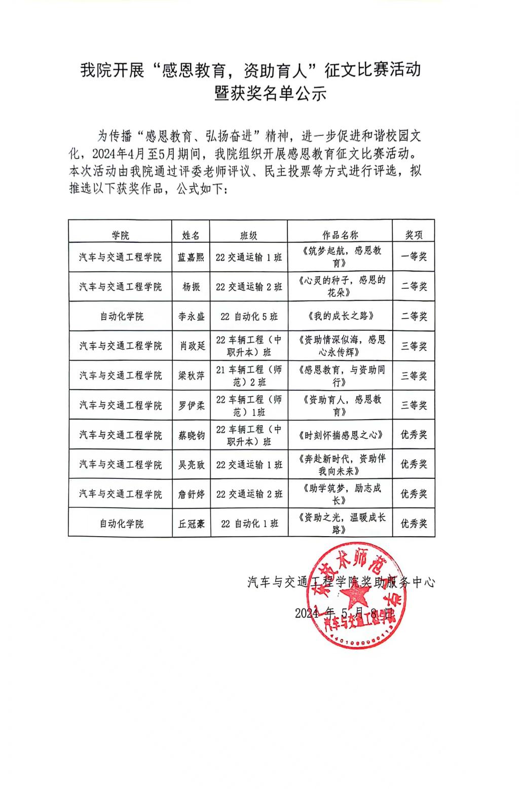韦德官方网站开展“感恩教育,资助育人”征文比赛活动暨获奖名单公示